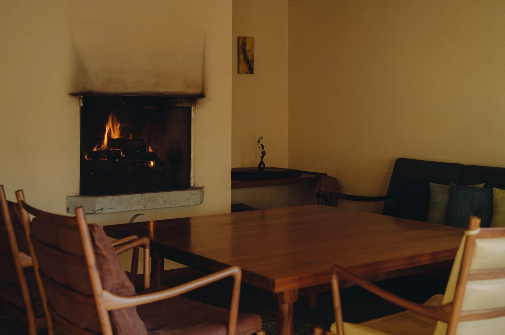 We invite you to enjoy dinner as if you were relaxing in your own living room—around the fireplace in the winter, or while looking at the swaying willow trees through the open window during the warmer seasons.